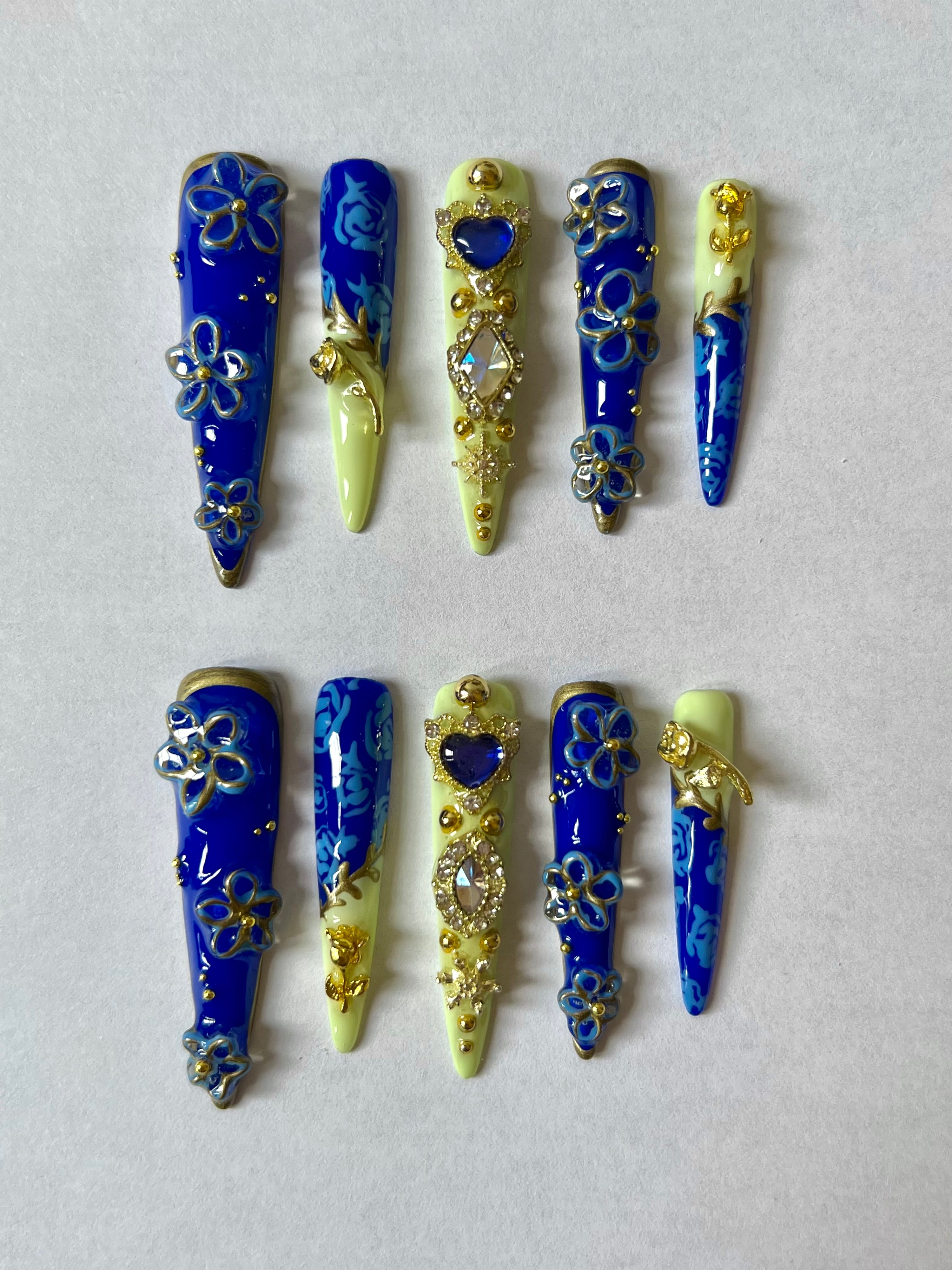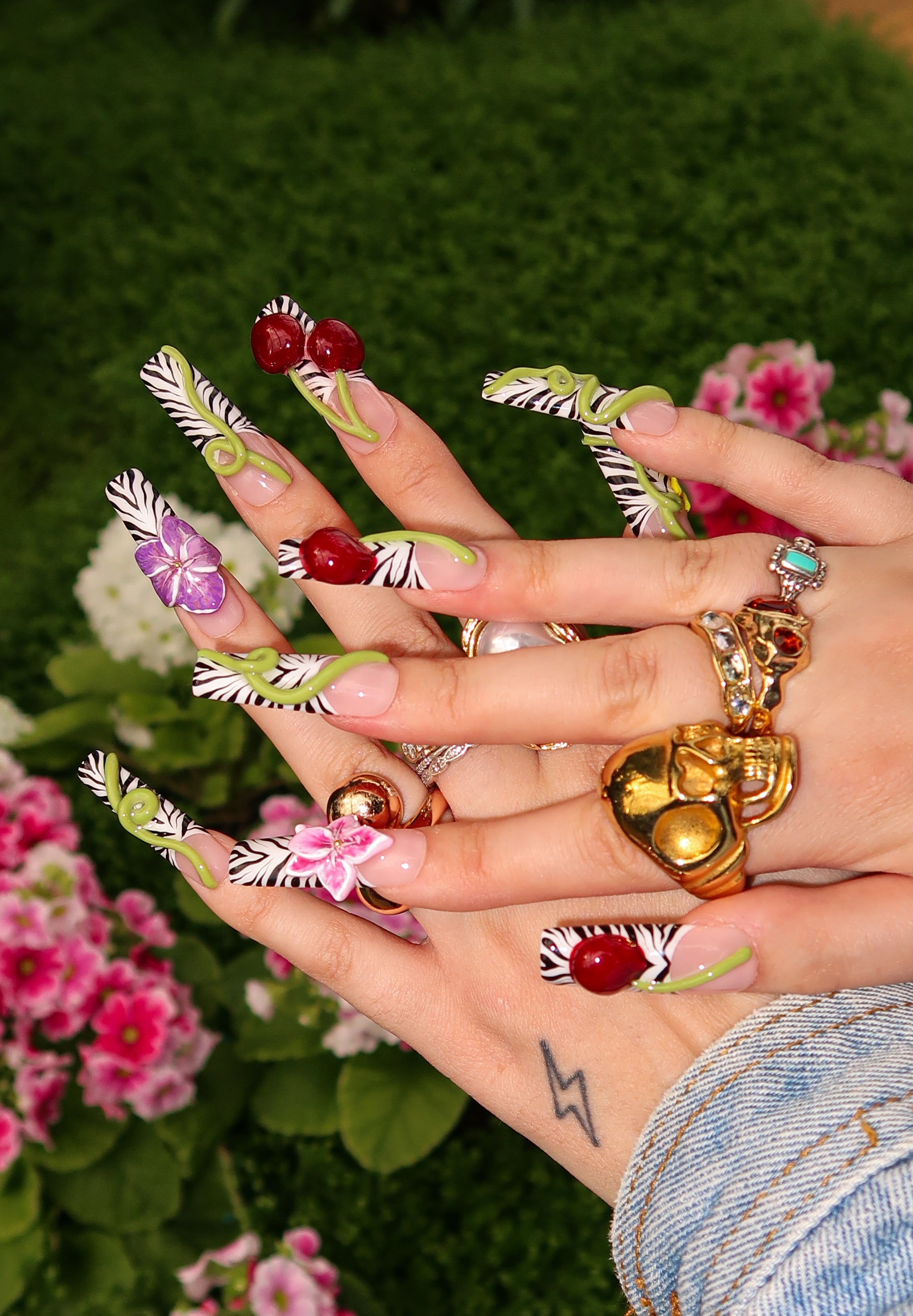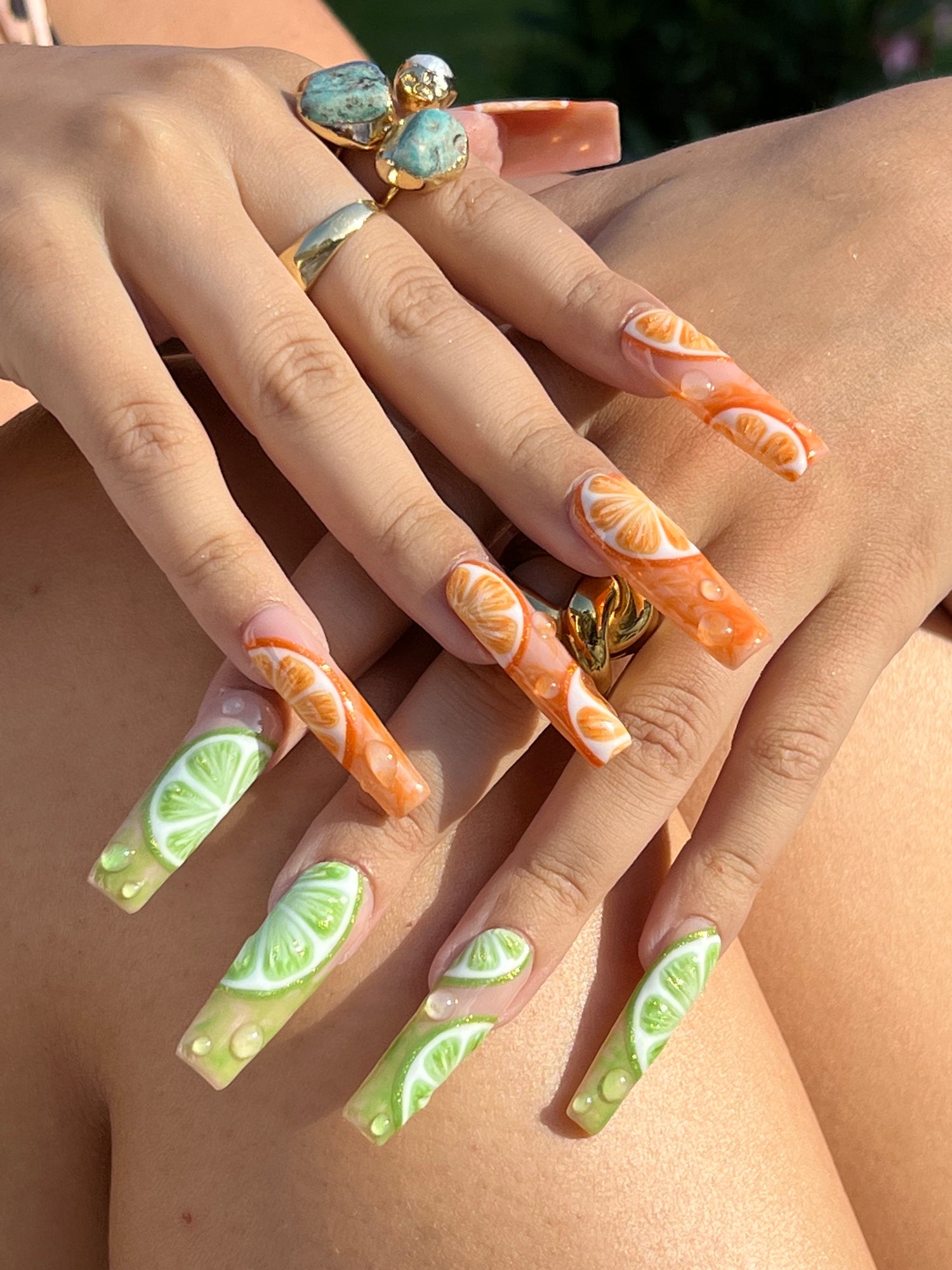 Réalisés avec des vernis semi-permanents à la main, effet salon de manucure.